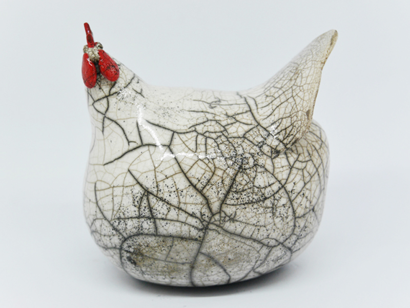 "I mainly make animals and birds, using a white, molochite based clay, which will withstand the rigours of Raku firing and will also fire to stoneware.